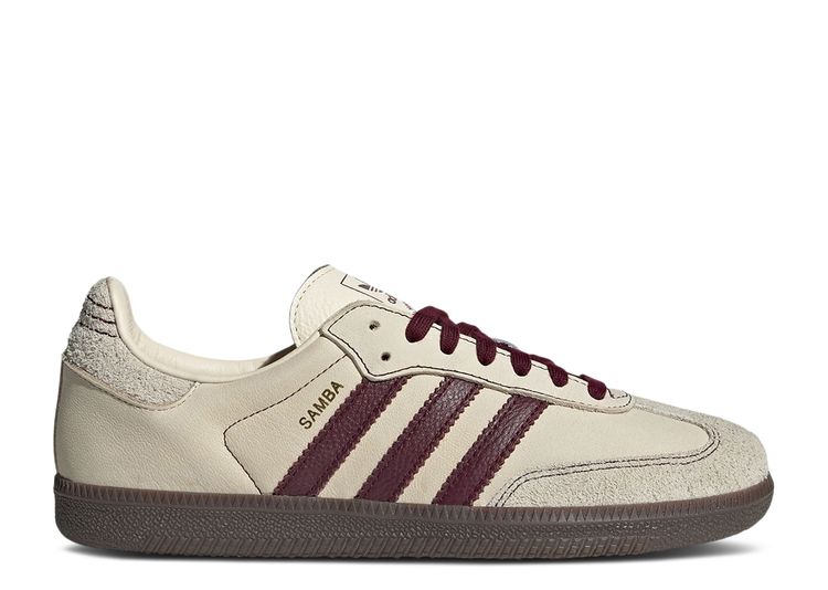 The Adidas Samba Beige Maroon combines classic style with striking contrast. It features a beige upper made from premium materials, complemented by deep maroon three-stripe branding and heel tab. The signature gum sole and textured toe cap complete the timeless design, making it a versatile and stylish choice for casual wear.