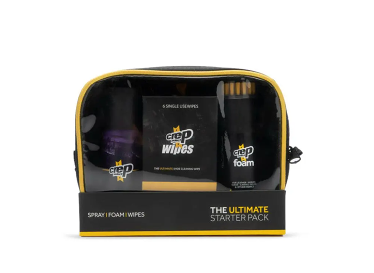 The Crep Protect Starter Pack is a comprehensive sneaker care kit that includes everything you need to protect and maintain your footwear. It features Crep Protect Spray, Wipes, and a Cleaning Brush, offering protection against dirt, stains, and water, making it ideal for sneaker enthusiasts or first-time users.