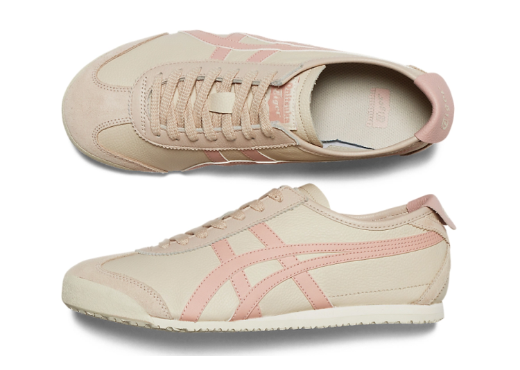 The Onitsuka Tiger Mexico 66 "Oatmeal Peach" combines a light beige (oatmeal) upper with soft peach accents, creating a stylish and versatile sneaker. Known for its classic low-top silhouette and the iconic Tiger stripes, this model offers both comfort and a trendy look, making it perfect for casual wear and various outfits.