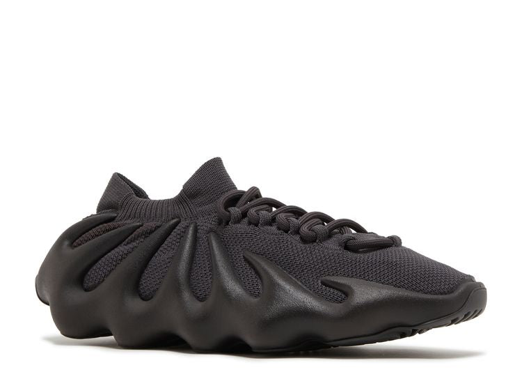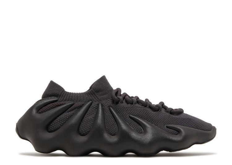 The Yeezy 450 Utility Black is a sleek and bold sneaker from Kanye West's Yeezy line, featuring an all-black "Utility Black" colorway. The shoe boasts a unique, futuristic design with a stretchy, sock-like knitted upper and a distinctive, sculptural midsole that wraps around the foot in wavy, organic shapes. The blacked-out design enhances its modern, minimalist aesthetic, while the EVA foam construction offers lightweight comfort and support. The Yeezy 450 Utility Black combines cutting-edge style with everyday wearability, making it a standout piece in the Yeezy collection.